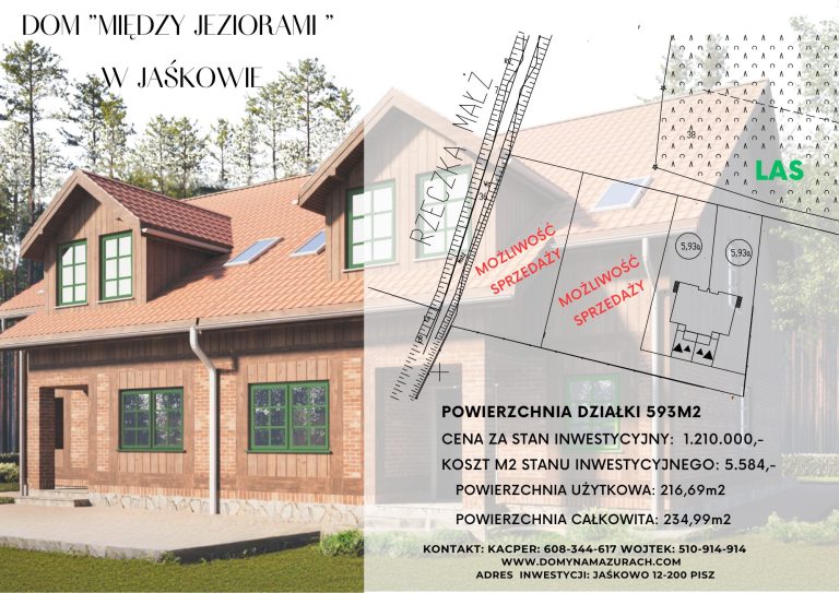 Wśród lasów Puszczy Piskiej, pomiędzy malowniczymi jeziorami Szlaku Wielkich Jezior Mazurskich, stoi niezwykły dom rodzinny w Jaśkowie. Stworzony z pasją, harmonijnie łączy tradycję z nowoczesnością – elewacja z ręcznie formowanej cegły, naturalnego kamienia i drewnianej stolarki okiennej w odcieniu mazurskiej zieleni sprawia, że wygląda jak z bajki.